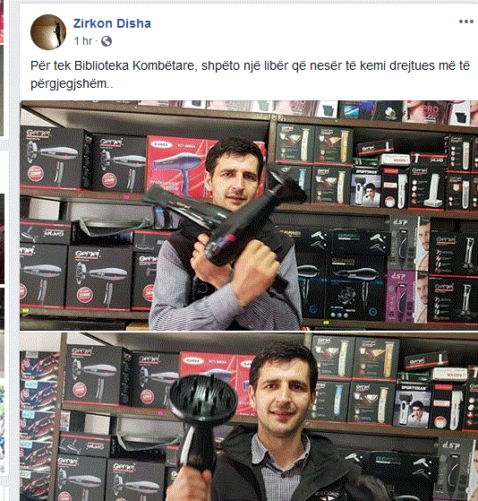 Ndërsa punonjësit vijojnë punën intensive për tharjen e plotë të pjesës së mbetur, aktivisti i njohur i shoqërisë Civile , Zirkon Disha ka postuar disa foto të tij ku i armatosur me dy tharëse flokesh bën thirrje për shpëtimin e librave të Biblotekës Kombëtar.