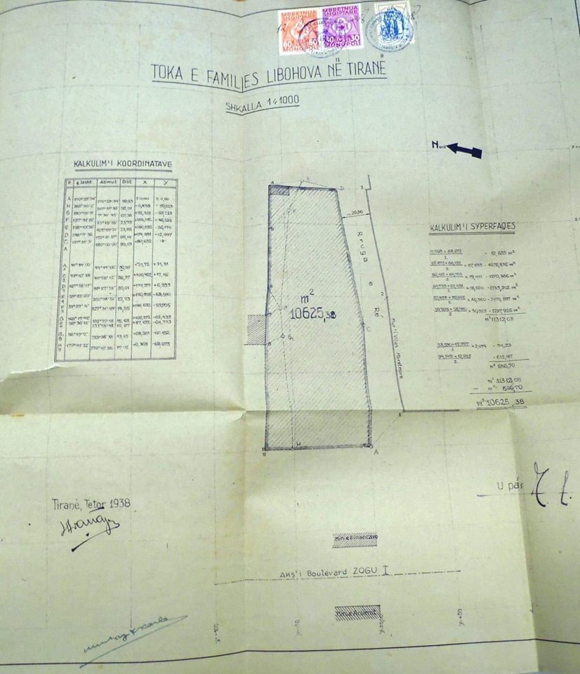 Bashkëngjitur është kontrata e cila vërteton se prona ka një sipërfaqe prej 10625.31 metrash katrorë. E blerë nga Francesco Jacomoni në llogari të Mbretërisë Italiane për 7 franga floriri metri katror. Në total 74377.17 monedha floriri.