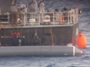 Në gomone ndodheshin  10 fëmijë dhe 7 gra, 2 prej të cilave shtatzënë.Anija Butrinti e Forcës Detare ia dorëzoi 41 emigrantët një anijeje të Frontex. Anija ‘Butrinti’ patrullon në kuadër të operacionit të NATO-s në detin Egje.