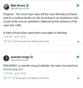 Autoritetet ende nuk kanë komentuar për shpëtimet e të hënës dhe nuk kanë konfirmuar asnjë prej emrave të fëmijëve.Megjithatë, ata që udhëheqin përpjekjet janë bërë gjithnjë e më optimiste dhe kanë thënë se shpëtimet e mbetura në sistemin e shpellës Tham Luang, në provincën Chiang Rai në veri të vendit, mund të ndodhin më shpejt se sa pritej. Mediat shkruajne se priten “lajme të mira”.
