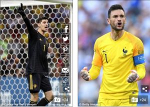 Dy nga portierët më të mirë në botë, edhe pse të dy Thibaut Courtois dhe Hugo Lloris kanë një gabim. Të dy kanë qenë vendimtare për fushatat e Kupës Botërore të kombeve të tyre përkatëse. Secili prej tyre bëri një kursim të shkëlqyeshëm në çerekfinale dhe mund të vendosë se kush arrin në finale dhe që duhet të vendosë për play-offin e tretë apo të katërt. Vështirë për t’i ndarë ato.