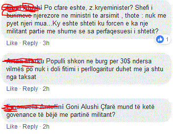 Më poshtë janë disa prej komenteve që kanë shkruajtur qytetarë të ndryshëm: