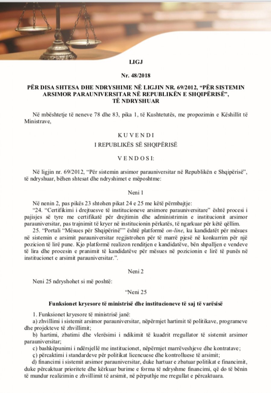 Gjithashtu, një tjetër shtesë e rëndësishme është përfshirja e përfaqësuesit të ministrisë përgjegjëse për Diasporën në Këshillin Kombëtar të Arsimit Parauniversitar.