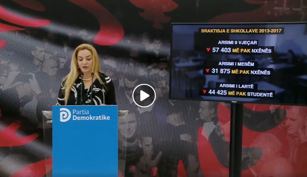 Sipas deputetes së partisë demokratike, 133 mijë nxënës kanë braktisur shkollën. Sipas saj, kjo ndodh për shkak se Edi Rama dhe qeveria e tij kanë politizuar dhe arsimin.