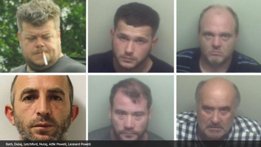 Të dënuarit, sipas asaj që shkruan BBC, janë dy britanikë babë e bir, Leonard dhe Alfie Powell, Wayne Bath Albert Letchfor, si dhe dy shqiptarët, Sabah Dulaj, 39 vjeç dhe Artur Nutaj, 23 vjeç.