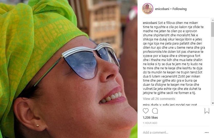 Mesazhi i plotë i Eni Çobanit në Instagram