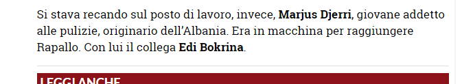 Edhe pse nuk është konfirmuar zyrtarisht nga autoritet apo dhe nga ambasada shqiptare në Itali, mediat italiane shkruajnë për të rinjtë shqiptarë të përfshirë në shembjen tragjike të urës në Xhenova të Italisë.