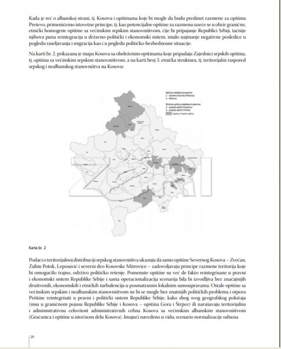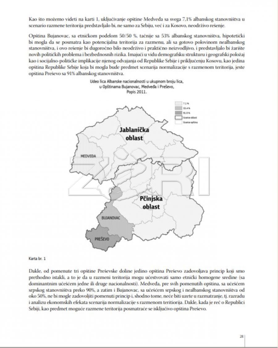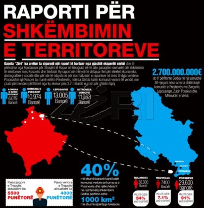 Gazeta “Zëri” ka arritur të sigurojë një raport të hartuar nga gjashtë ekspertë serbë dhe të përkrahur nga Fondacioni për Shoqëri të Hapur në Beograd, në të cilin paraqiten skenarët për shkëmbim të territoreve mes Kosovës dhe Serbisë.