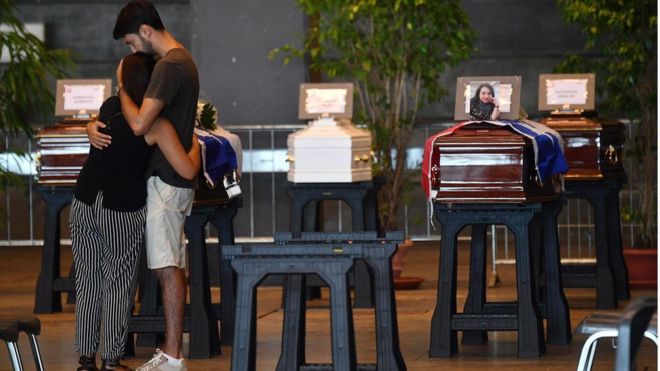 Të premten, të afërmit e pikëlluar u mblodhën në sallën e Gjenovës ku u vendosën rreshtat e arkivoleve për funeralin shtetëror të së shtunës.