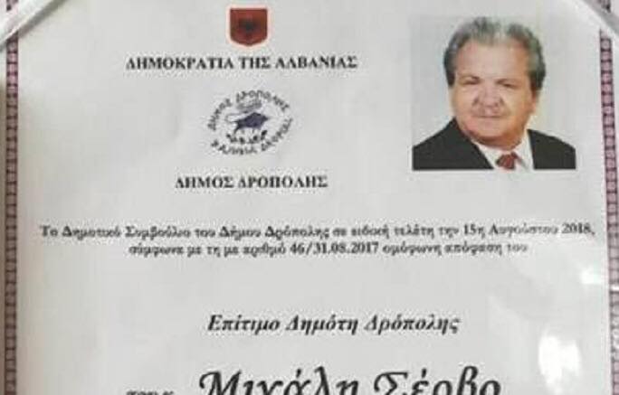 Sipas tij, kjo bashki më 15 Gushtë me rastin e festët së Shën Marisë shpalli Qytetar Nderi Mihal Servon nga Janina një antishqiptar i tërbuar që merret me financimin e aneksimit të jugut të Shqipërisë.