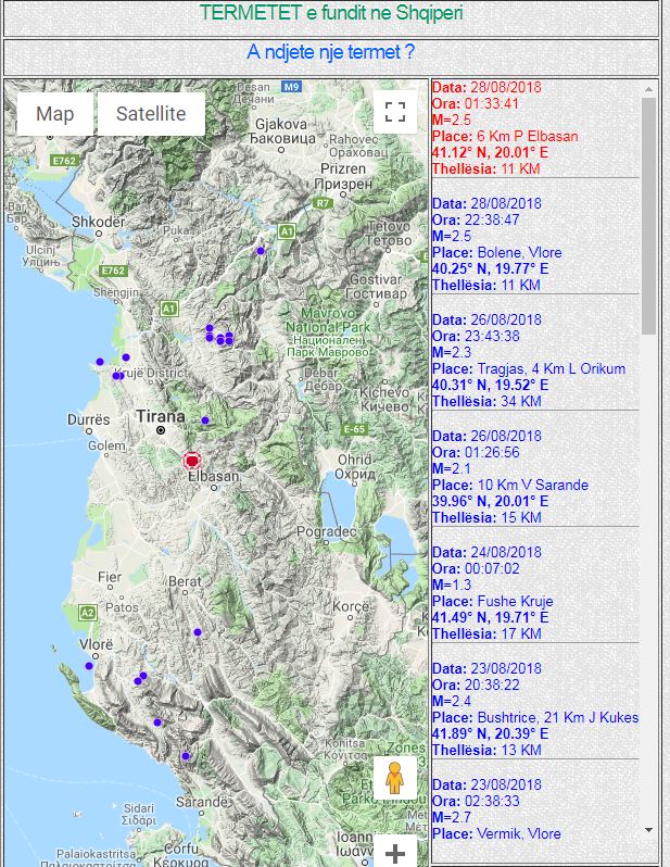 Sipas Institutit të Gjeoshkencave Energjisë dhe Ujit (IGJEUM)një tjetër tërmet është regjistruar gjatë mbrëmjes së kaluar me magnitudë 2.5 ballë në Elbasan.