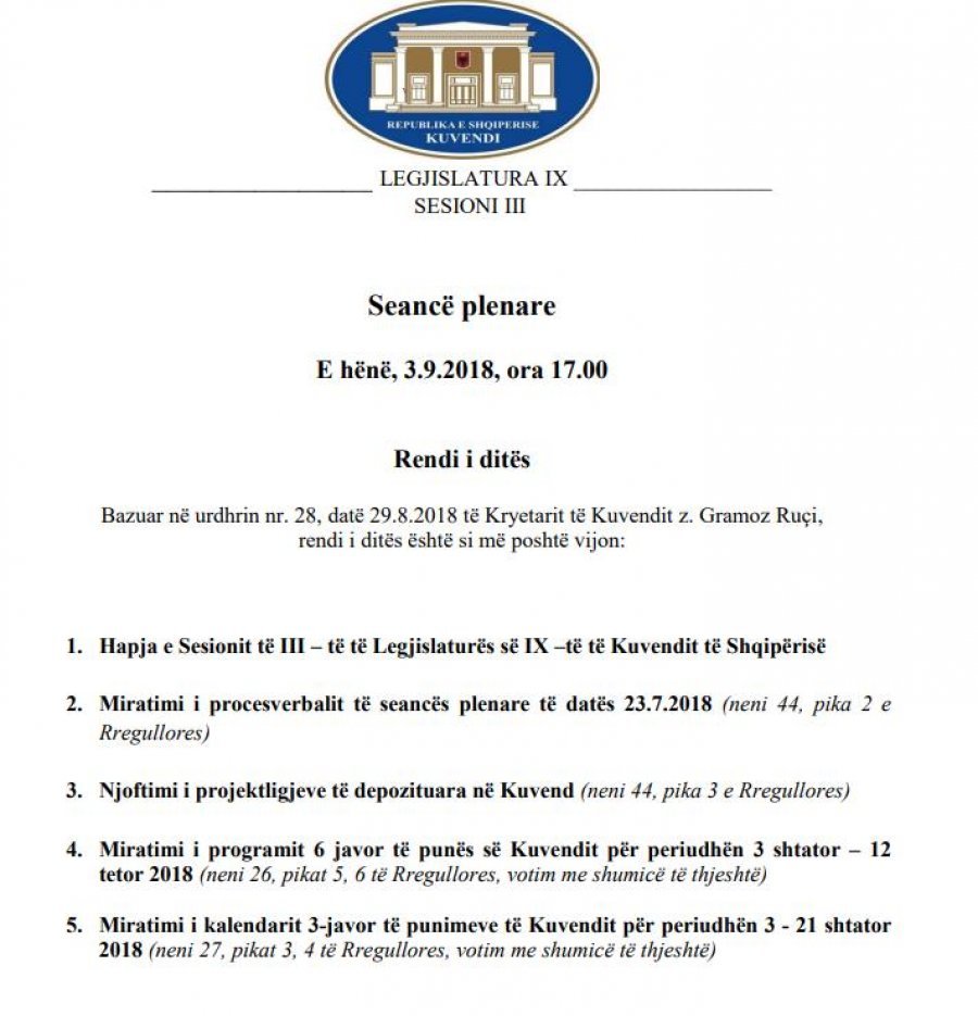 Parlamenti do të planifikojë sot programin kalendarin 6-javor të punimeve, ndërkohë që pritet vendimi për ligjin e Teatrit Kombëtar, të cilin Meta e ktheu mbrapsh në Parlament në fund të korrikut, së bashku me 9 pika për tu sqaruar.