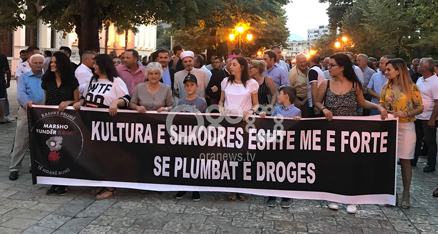 Me parulla në duar “Kultura e Shkodrës është më fortë se plumbat e drogës”, qytetarët kanë marshuar paqësisht.