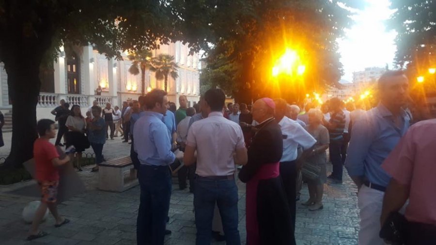 Qytetarë të shumtë nga Shkodra janë mbledhur në pedonalen e qytetit për të marrë pjesë në një marshim kundër krimit dhe drogës.