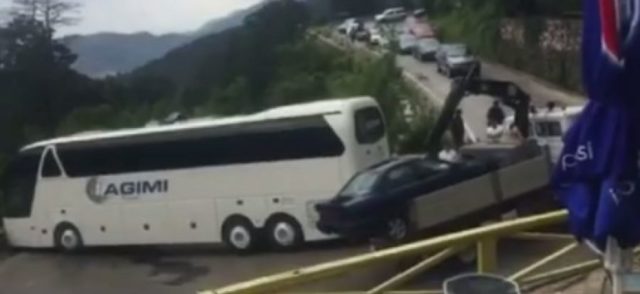 Ngjarja ka ndodhur pasditen e kësaj të marte, ku autobusi me 50 turistë u doli nga rruga dhe u përplas me bordurën anësore.