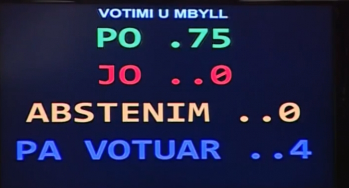 Ndërkohë që opozita ka bojkotuar punimet e sotme të Kuvendit, vetëm me votat e mazhorancës, është votuar me 75 vota pro dekreti i amenduar i Presidentit Ilir Meta.