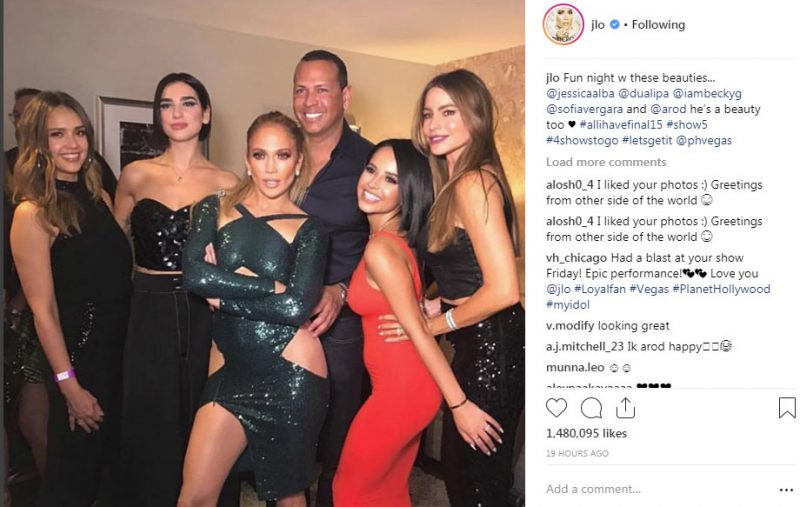 Ajo shfaqet shfaqet duke pozuar me Duan, aktoren e famshme Sofia Vergara, këngëtaren e hiteve latine Becky G dhe aktoren e njohur Jessica Alba. Sigurisht që në foto duket dhe partneri i pandashëm i JLO, Alex Rodriguez dhe mbi të gjitha aty ndodhet dhe Dua e cila shkëlqen./K.Balliu