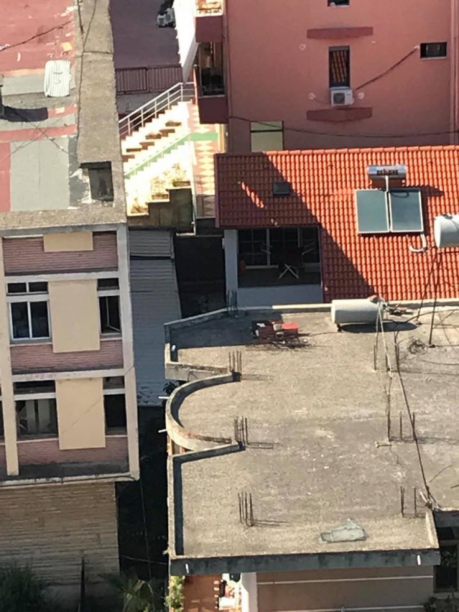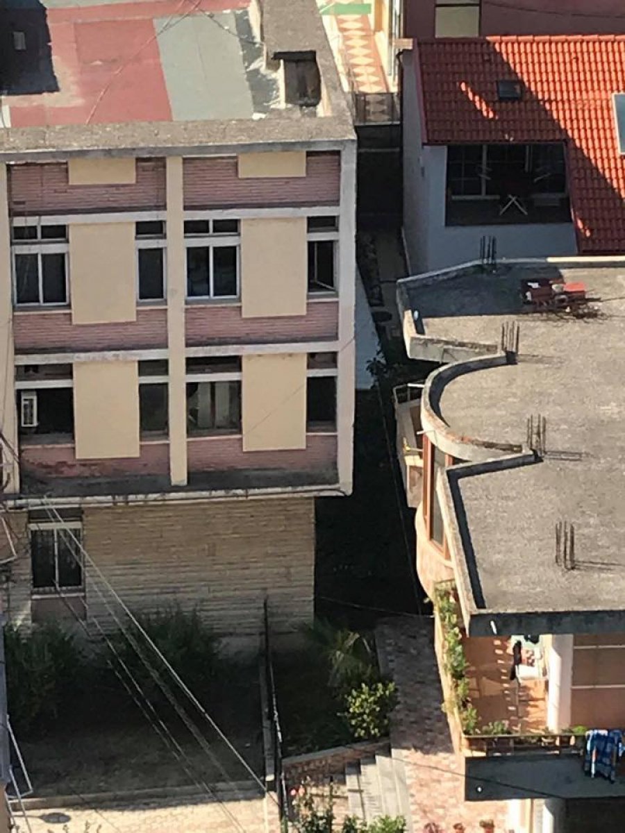 Kjo shtepi e ka zaptuar polikliniken dhe ka marr hapesire publike as 70 cm nuk eshte kurse pjesa tjeter ka bere qymez per pulat kane bllokuar pjesen e shkalleve dhe si kane lene 1cm hapesire nga ana tjeter kane mbjell ullinje As bashkia as shendeti publike dhe as IKMT svene ujin ne zjarr Te bjere zjarr ska nga hyn zjarrefikesi as per te lyer ska vend se jane ndertuar ngjityr”