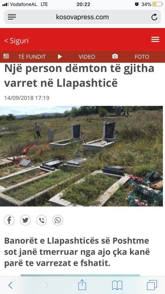 Ajo ka kërkuar ndërhyrjen e autoriteteve që të ndalojnë personin përgjegjës, që shkatërroi rreth 80 gurë varresh në fshatin Llapashticë e Poshtme në Kosovë.