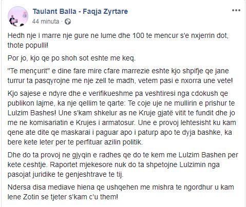 “Une e provoj lehtesisht ku kam qene ate dite qe maskarai i paguar apo i paturp apo te dyja bashke, ka bere kete leter per te perfituar azilin politik” thotë Balla teksa paralajmëon se këtë do ta provojë në gjyqin e rradhës që do të ketë me Lulzim Bashën për këtë çështje.