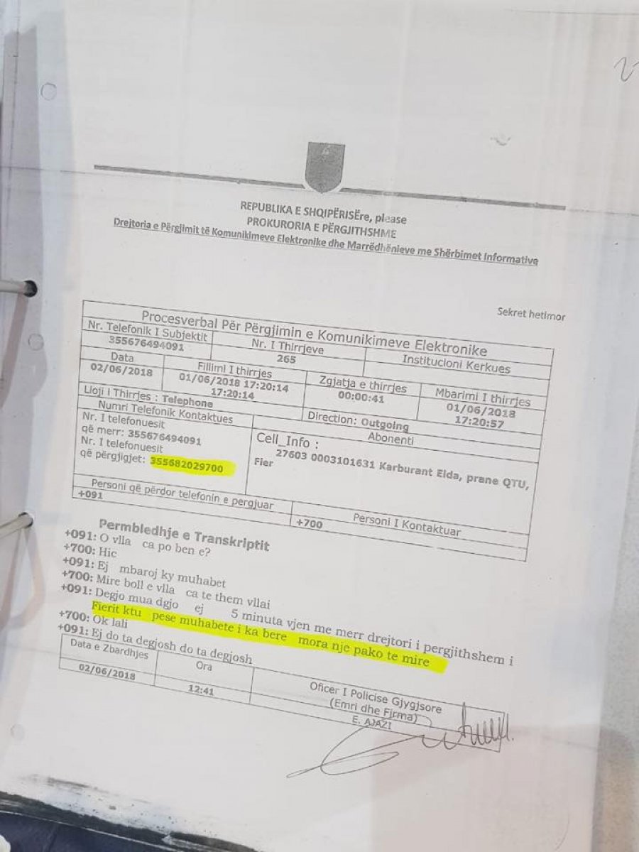 Lexoni përgjimet e Prokurorisë të bisedava të zbardhura midis Fred Alizotit, një mikut të tij dhe drejtorit te policisë se Fierit, ne te cilat ai pohon se është lidhur me te Taulant Bego Yaris, drejtori i përgjithshëm i policisë famozi Ardi Xhafa. sb