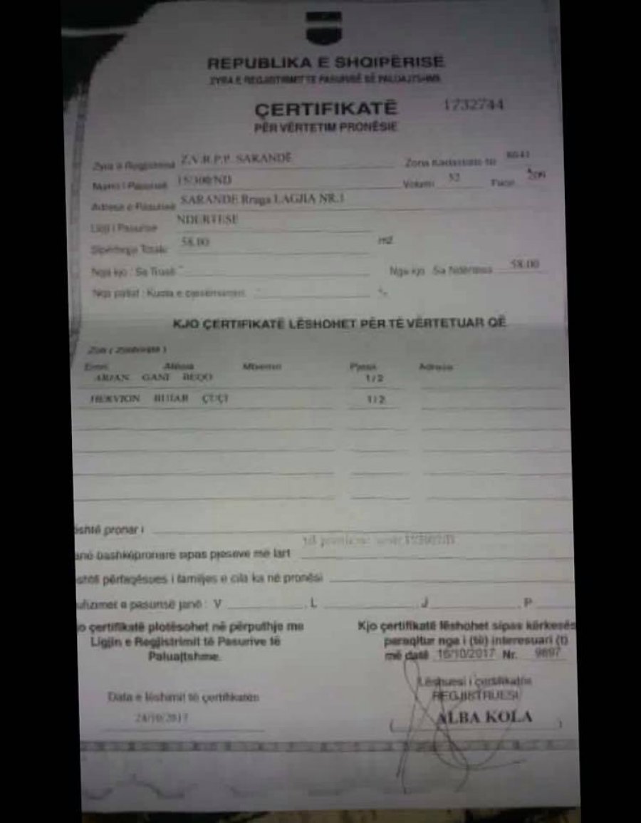Kjo siperfaqja pa objekt vetem me nje garazh te vogel eshte legalizuar ne emer te dajos te tij Arjan Beqo dhe nje tjeyri Garazhi me lart.Ky objekti me poshte eshte kabine elektrike dhe e ka legalizuar per objekt.M. Te lutem publikoje ato shkeljet qe ju dergova per ish drejtorin e ALUIZNI Sarande pasi jane