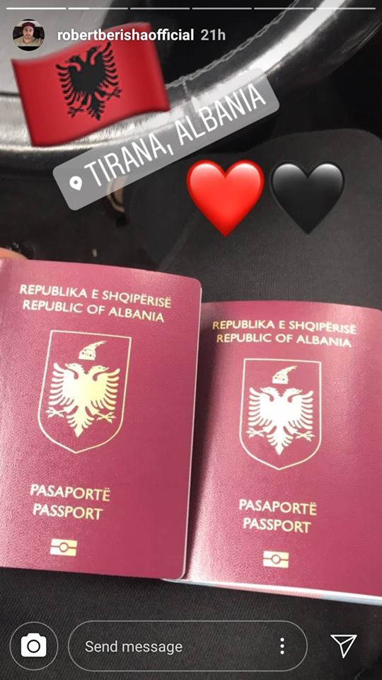 Në një postim në InstaStory, Roberti ka nxjerrë pasaportat e të dyve duke i bashkangjitur dhe flamurin shqiptar.