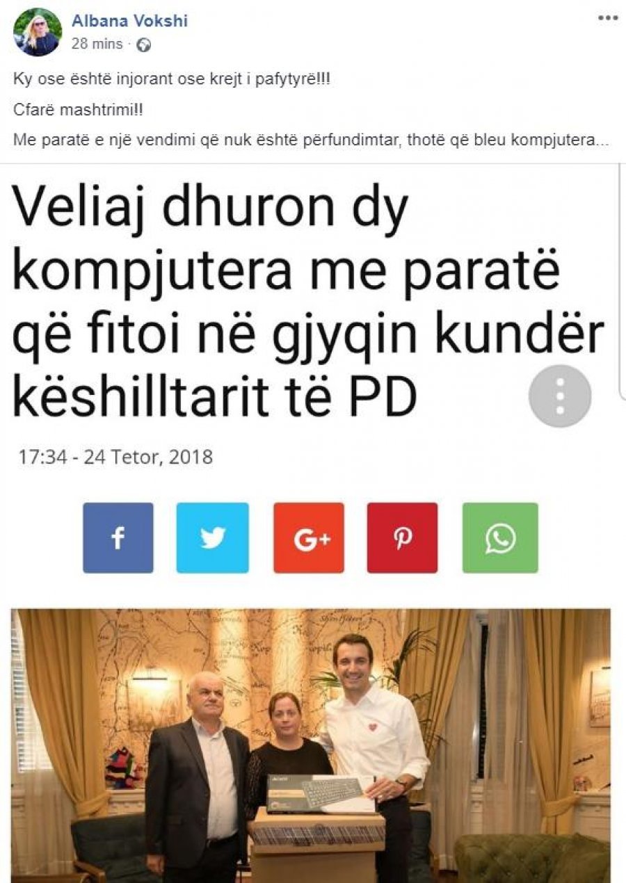 Postimi i Albana Vokshit në Facebook: