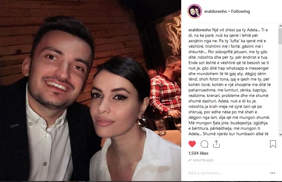 Një vit shkoi pa ty Adela… Ti e di, na ke parë, nuk ka qenë i lehtë për asnjërin nga ne. Pa ty ‘lufta’ ka qenë më e vështirë, trishtimi më i fortë, gëzimi më i shkurtër… Por sidoqoftë jetuam, me ty çdo ditë, ndoshta dhe për ty, për ëndrrat e tua. Ende sot është e vështirë që të besosh se ti nuk je, çdo ditë hap ëhatsapp e messenger dhe mundohem të të gjej aty, dëgjoj zërin tënd, shoh fotot tona, qaj e qesh me ty, për kohën tonë, kohën e një shoqërie me ditë të paharrueshme, me lumturi, zënka, kapriço, realizime, krenari, probleme dhe me shumë shumë dashuri.