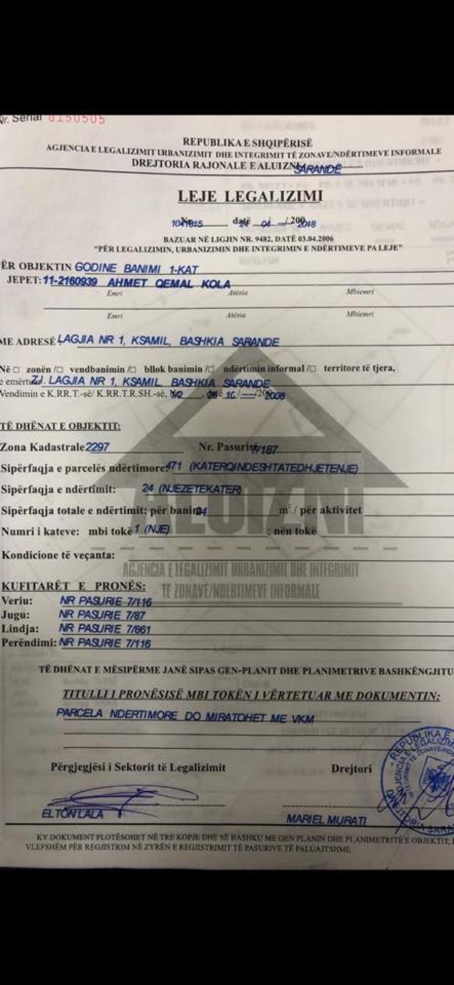 “Pershendetje Doktor! Shikon cfar legalizon rilindja ne ksamil. Z. Kola me nje barake sic e shikoni edhe ne foto vetem 24 m2 ka perfituar 471 m2 parcele e cila nuk eshte fare ne funksion te objektit por ckane gjetur tok te lire rreth e rrotull.