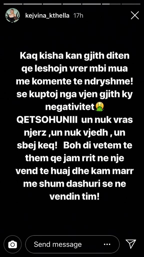 Por këtë radhë, komentet negative të ndjekësve në rrjetet sociale, e kanë indinjuar shumë. Kejvina mesa duket nuk ka pritur që në vendin e saj të marrë këto reagime.