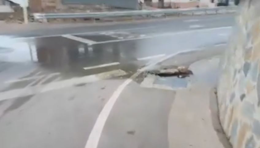 Ky i fundit i ka dërguar një video Berishës, ku shihet se si është pusetat në rruga e re Lin-Pogradec janë bllokuar, ndërsa uji kalon përmes asfaltit.
