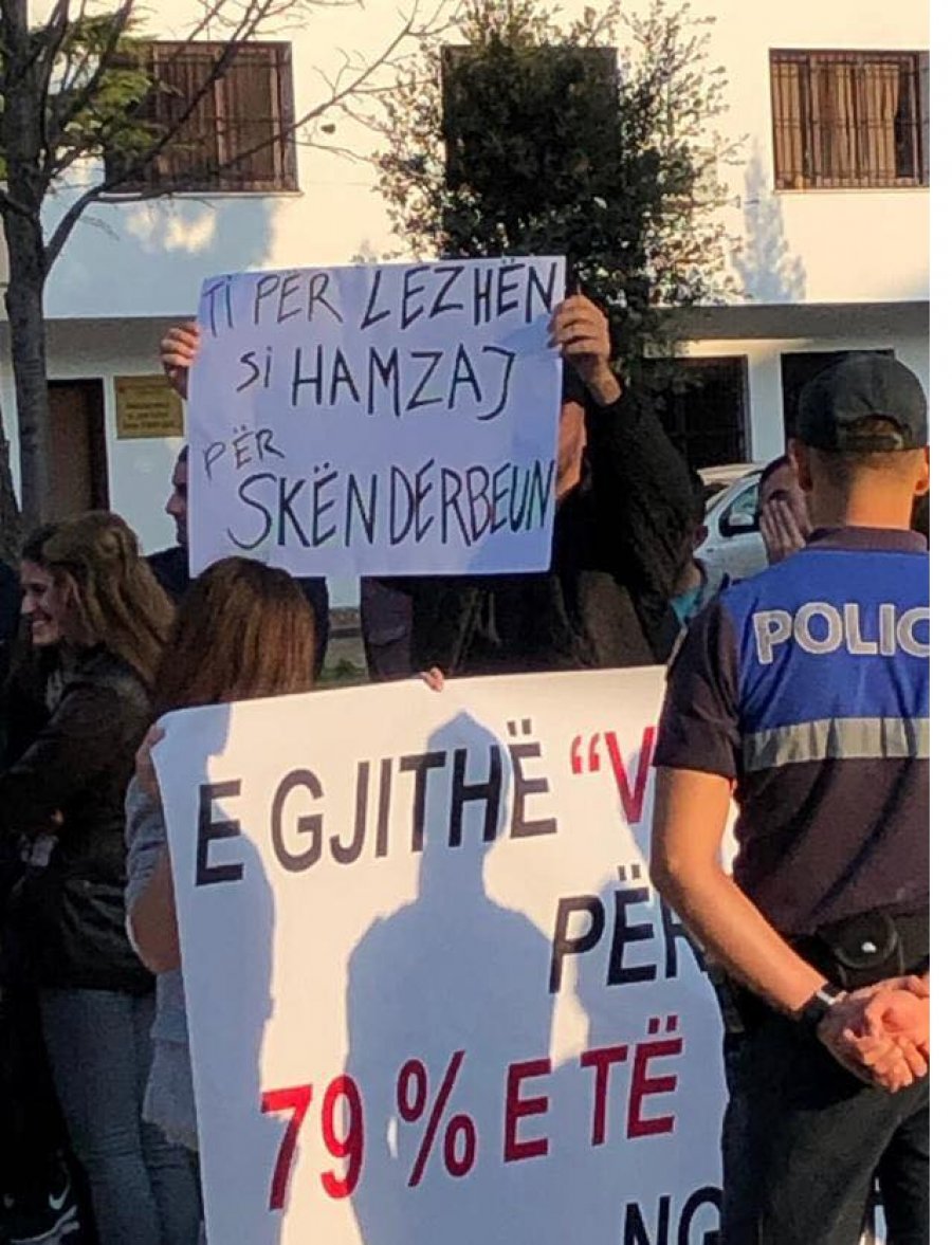 Sot në Lezhë, me qindra të rinj lezhjanë me pankarta në duar ku e etiketonin Ramën si Hamzai i Shqipërisë, kanë bllokuar rrugët e qytetit.