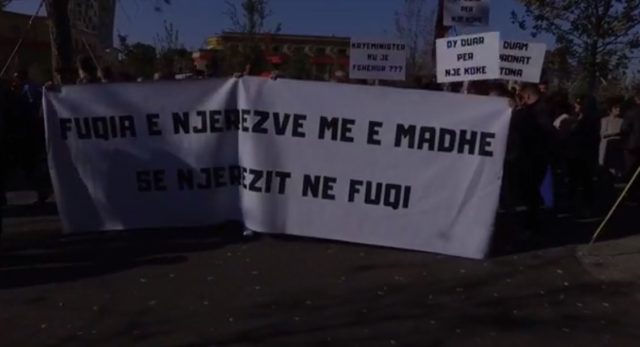 Me pankarta në duar, ku njëra prej tyre shkruan ‘Fuqia e njerëzve më e madhe se njerëzit në fuqi’, ata kërkojnë zgjidhje për situatën e krijuar.