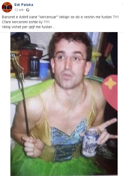 Paloka ka postuar në rrjetet sociale një fotomontazh të kryebashkiakut të veshur me fustan dhe në dorë mban një shkop magjik.