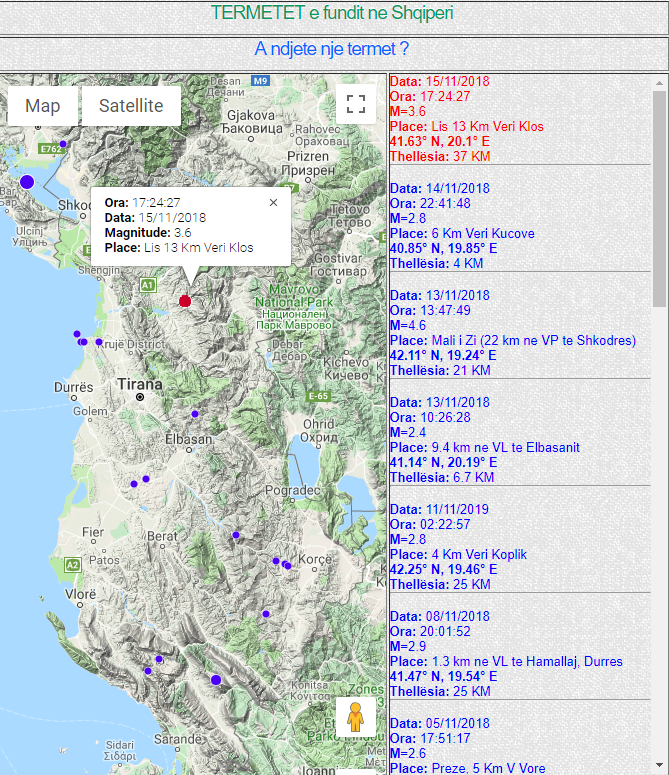 Sipas të dhënave të IGJEUM, tërmeti ka rënë në orën 17:24 dhe ka qenë me thellësi 37 KM, 13 km larg Klosit.