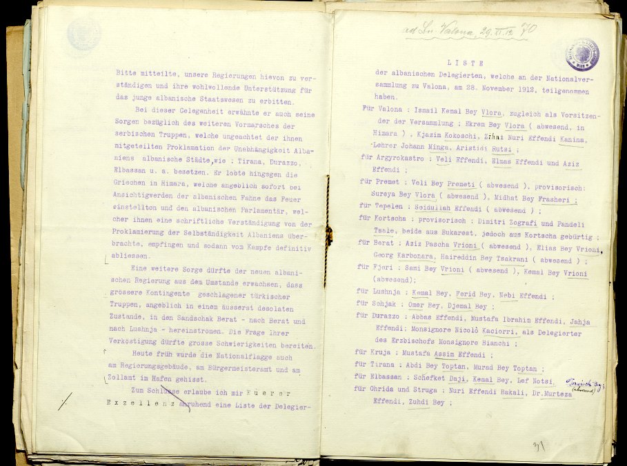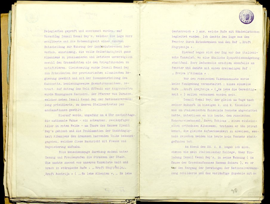 Telegrami prej 7 faqesh është shkruar nga konsulli austriak në Vlorë, Wenzel Lejhanec, dhe i dërgohet ministrit të jashtëm austriak për t’i dhënë lajmin se Ismail Qemali e ka shpallur Shqipërinë të pavarur.