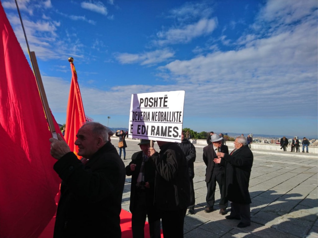 Ata mbanin në duar pankarta ku shkruhej: “Poshtë qeveria neoballiste e Edi Ramës.”