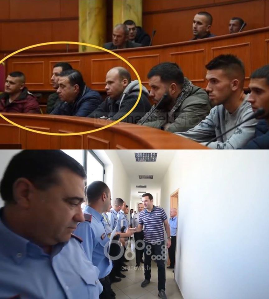 “Ky është Koli. Te foto lart luan rolin e banorit të shqetësuar të Unazës së Re kurse te foto poshtë pret rradhën për ti dhënë dorën shefit gjatë takimit në policinë bashkiake ku edhe merr rrogën.