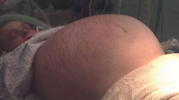 Pas një skaneri me ultratinguj, zbuloi se gjatë gjithë kohës kishte mbajtur një kist gjigant ovarian që peshonte sa shtatë foshnja.