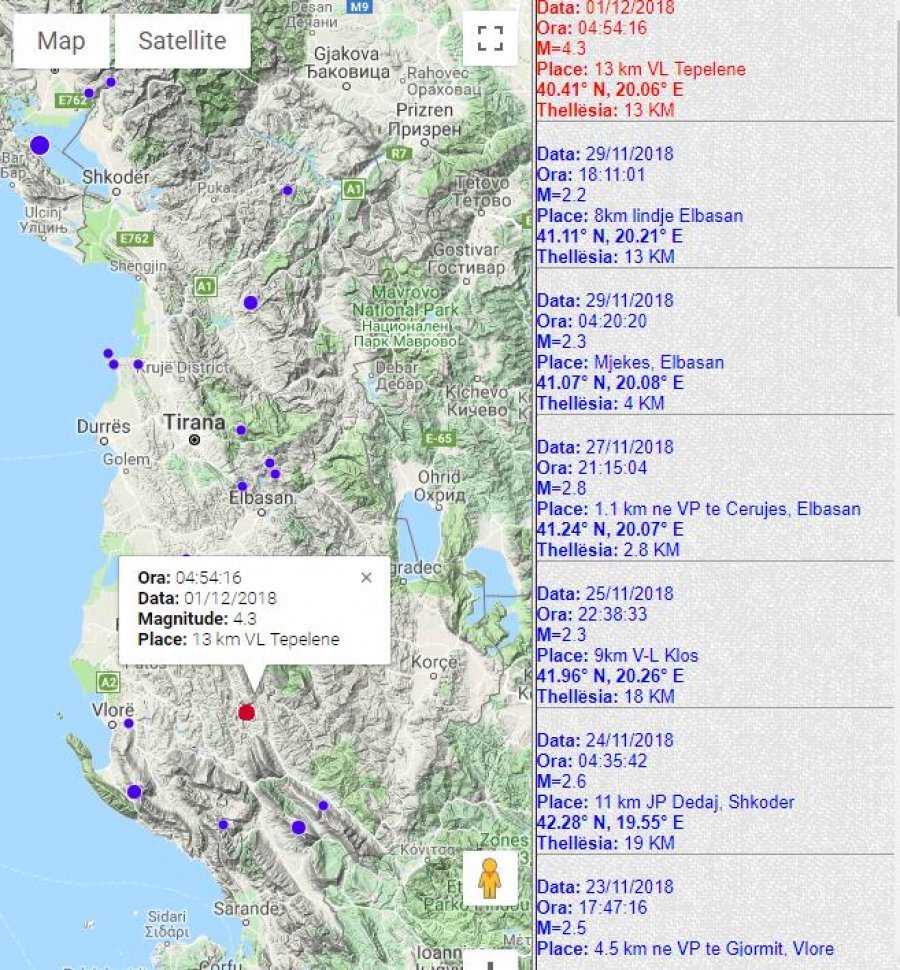 Një tërmet 4.3 ballë ka goditur Shqipërinë.