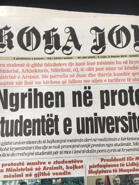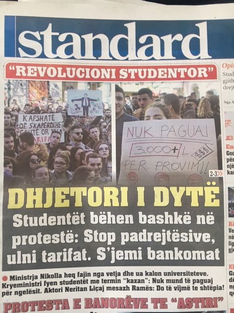 Nga 10 gazeta të përditshme, vetëm 3 prej tyre kanë pasqyruar në titujt kryesore protestën e studentëve. Ato janë gazetat Standard dhe Koha Jonë.