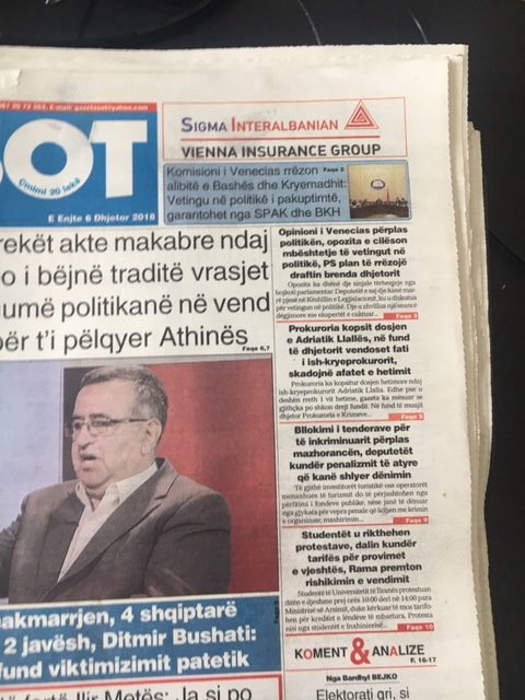 Gjashtë gazeta të tjera e kanë titull në anë në faqen e parë dhe brenda shkrime të pakonsiderueshme ku fshihet ngjarja.
