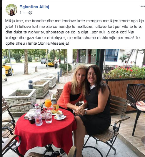 Kolege e miq te saj kane vershuar ne mesazhe ngushellimi plot dhimbje per humbjen e madhe.