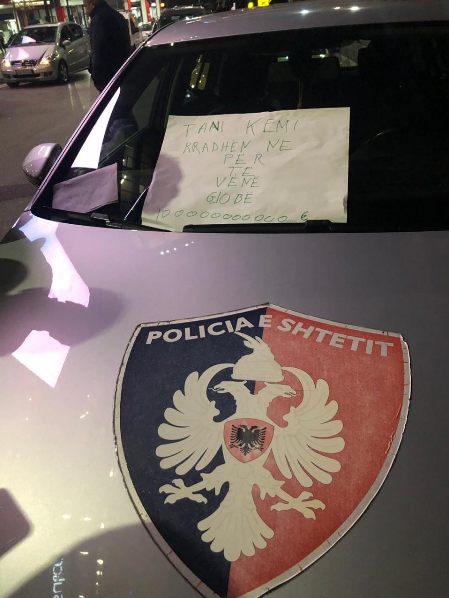 Ata kanë ndaluar një makinë policie dhe i kanë vendosur në xham një fletë gjobë.