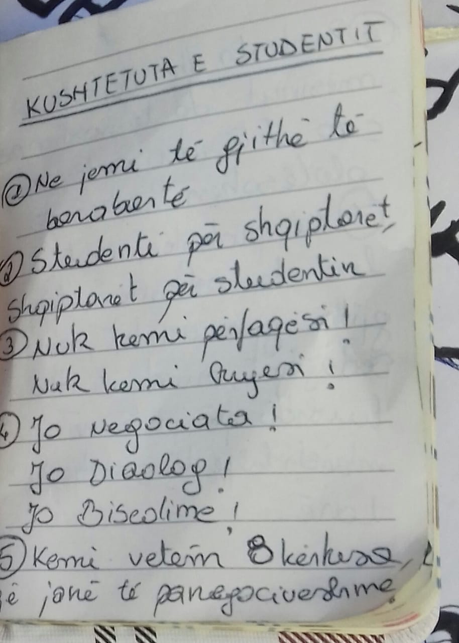 *Kushdo që nuk zbaton Kushtetutën e studentit nuk është student protestues.