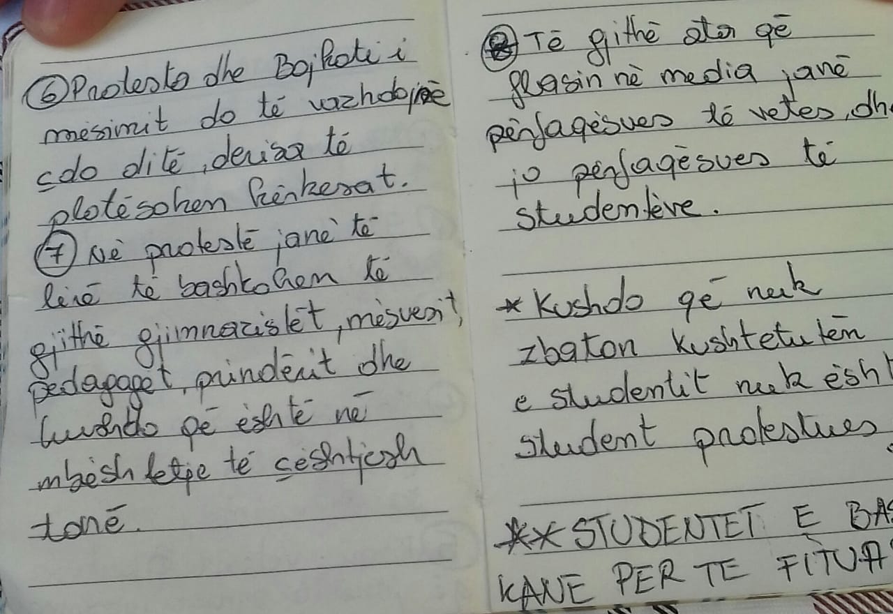 6- Protesta dhe bojkot të mësimit deri sa të plotësohen kërkesat