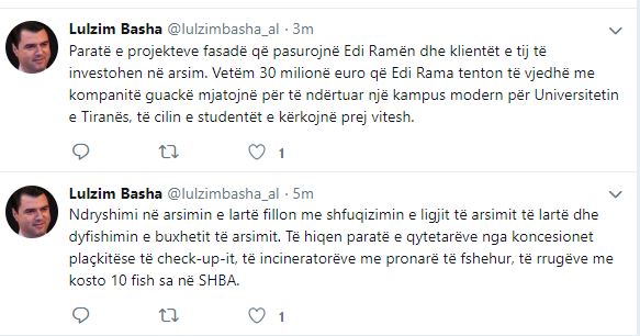 Në një postim në Twitter, Lulzim Basha shkuan se problemi i arsimit qëndron me faktin se Edi Rama nuk investon për të, por pasuron pronarët e fshehtë me projekte fasadë.