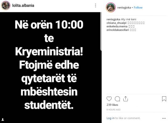 Bëhet fjalë për Renis Gjokën, i cili nëpërmjet një postimi në rrjetet sociale thotë se do të jetë në shesh me studentët në vijim.