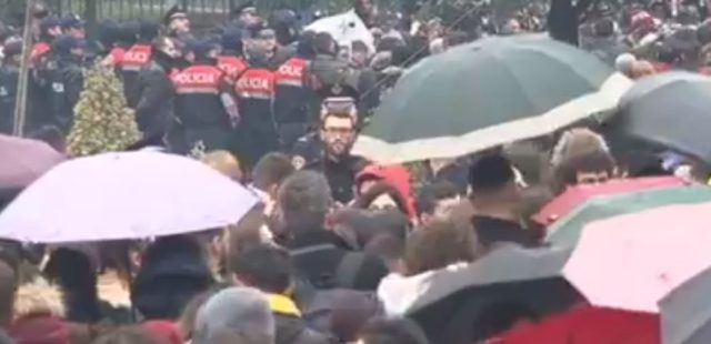Ata tentuan të krijojnë një kordon për të rrethuar godinën, gjë e cila nuk është pritur mirë nga policia.
